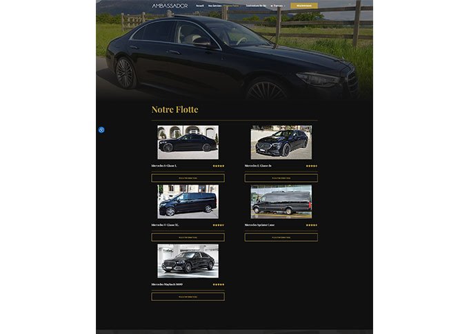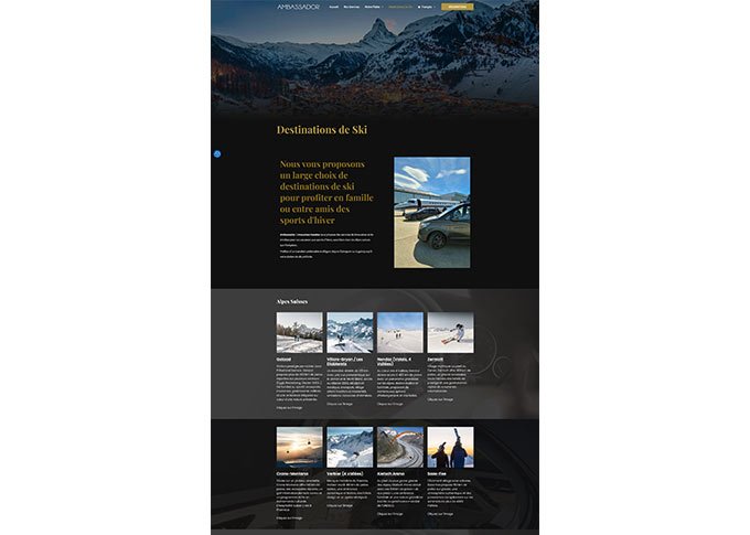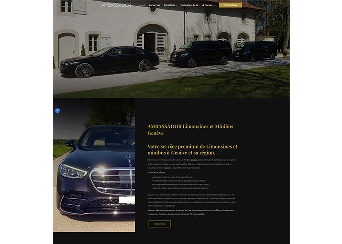 Création d'un site web vitrine pour une société de location de limousine Ambassador Limousine à Genève. Site sur base Wordpress, theme optimisé SEO, Copy writing, page de réservation, multilignue francais/ anglais/ russe et arabe.
