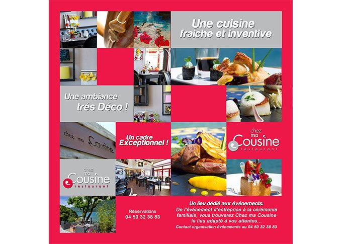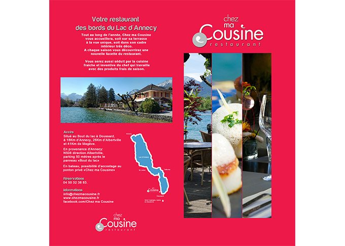 Création d'une carte pour le restaurant "Chez Ma Cousine" en version trifold et bifold.