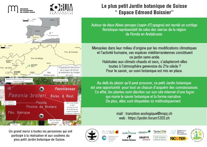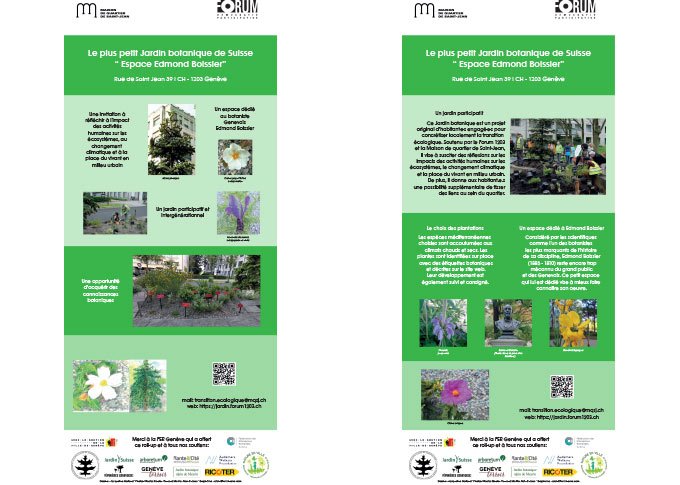 Création de Panneaux et RollUps pour le plus petit jardin botanique de Suisse dans le quartier de St Jean à Genève.